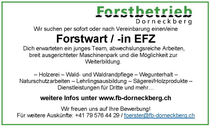 Herzlich willkommen auf der Webseite des Forstbetriebes Dorneckberg. Hier informieren wir Sie über unsere Arbeit und interessante Projekte rund um den Wald. Wir freuen uns über Ihren Besuch.